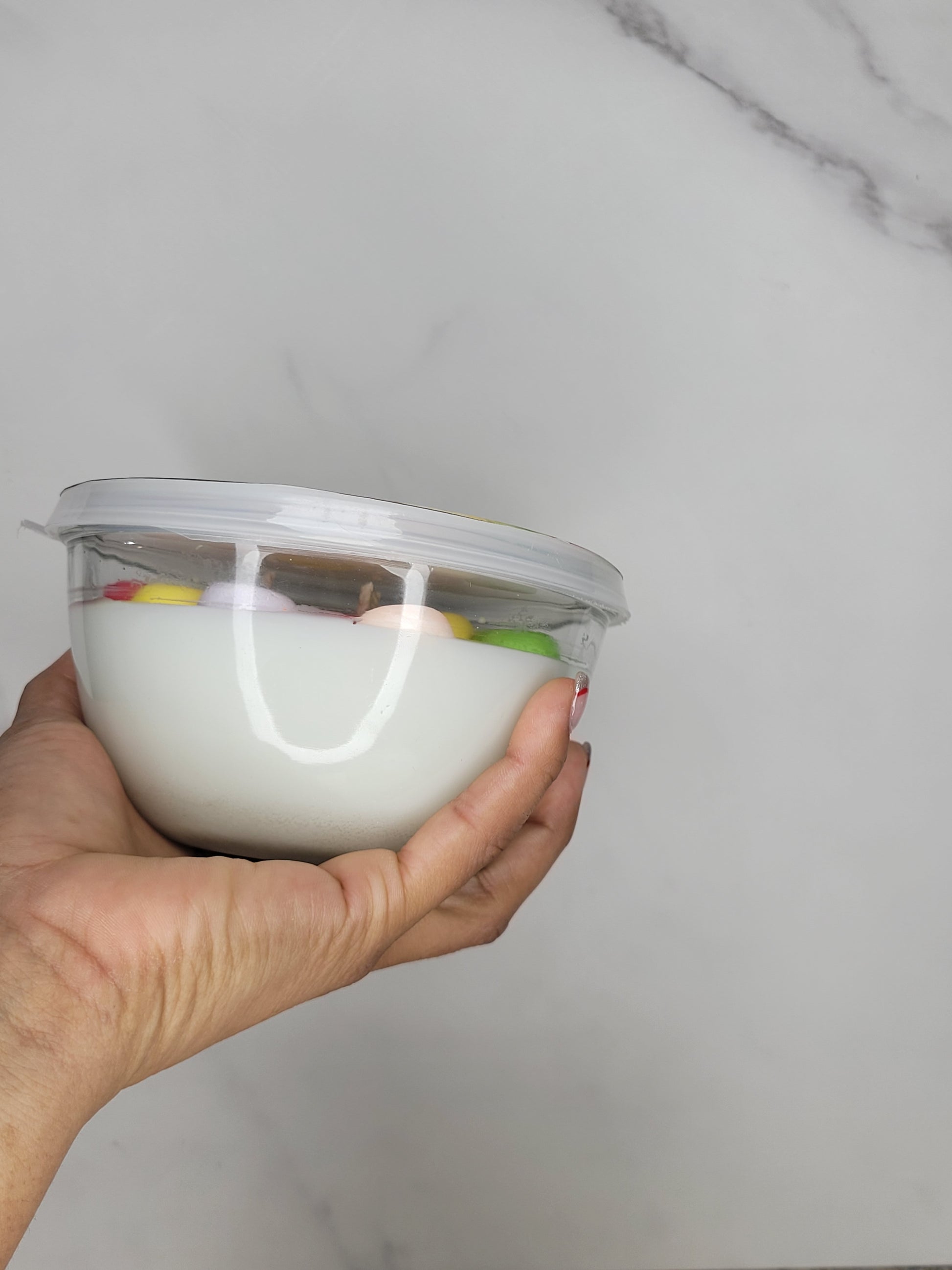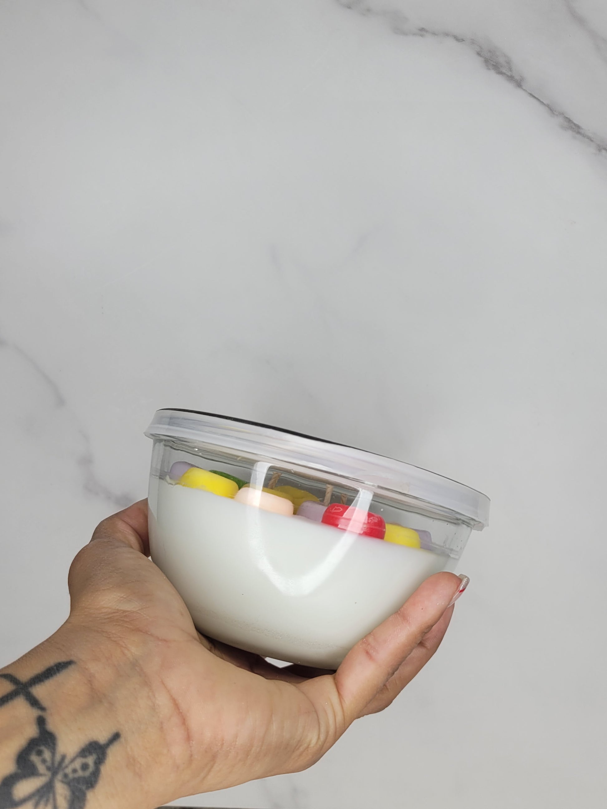 A favorite breakfast cereal made into a candle! A combination of sweet orange, tangy cherry, and sweet vanilla bean with sandalwood create this nostalgic cereal scent. Inspired by the Fruit Loops cereal.